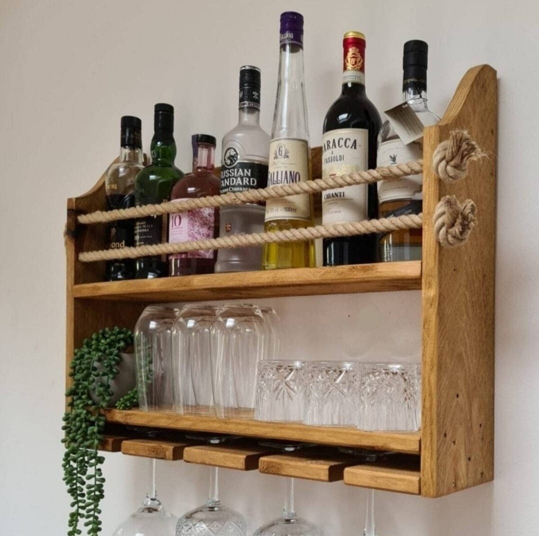 Buy Customized Designs 36 2 Tier Wall Mounted Liquor Display Bar Shelves W Wine Glass Rack Online At Desertcart Brunei